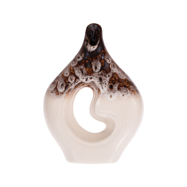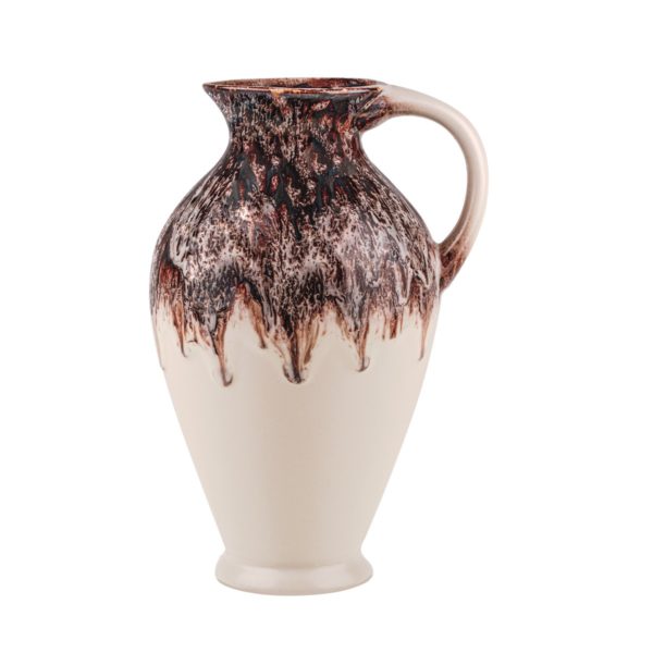 Originálna keramická váza, je odliata v dvojdielnej forme z bielej keramickej hliny. Po vyschnutí a vybratí z formy je vytvorený nástrek hnedou práškovou farbou a následne je váza aj glazovaná. Glazúra je nanesená z vonka aj zvnútra a tým sa zabezpečí nepriepustnosť vody. Spojením farby a glazúry vznikne originálny a jedinečný vzhľad každej vázy.