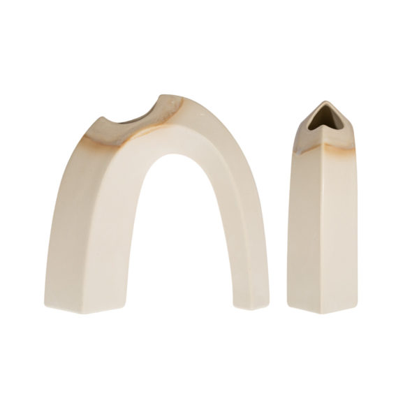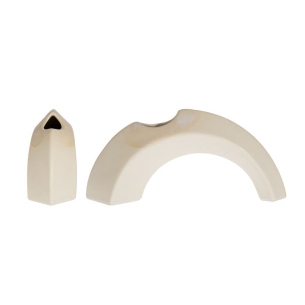 Aga I. Váza Krémová - je malá vázička v tvare podkovy alebo v malého mostíka. Patrí do kategórie menších váz. Jej atypický vzhľad a tvar ju predurčuje pre šikovnú myšlienku na originalnu dekoráciu. Jej šírka je len pár centimetrov a teda je vhodná aj na užšie poličky.