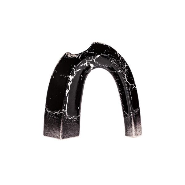 AGA l. Váza Čierno - Biela - je malá vázička v tvare podkovy alebo v malého mostíka. Patrí do kategórie menších váz. Jej atypický vzhľad a tvar ju predurčuje pre šikovnú myšlienku na originalnu dekoráciu. Jej šírka je len pár centimetrov a teda je vhodná aj na užšie poličky.