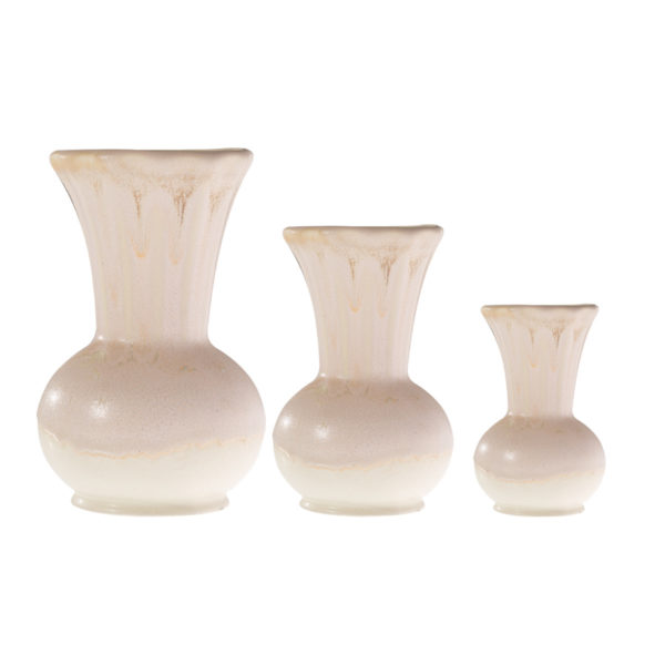 Kulka lll. Váza Krémová - je váza ktorá má v dolnej časti guľatý základ s podstavcom. Z gule v dolnej časti sa váza rozširuje a končí dostatočne širokým hrdlom aj pre veľké kytice kvetov. Kulka je sada 3 veľkostí od najmenšej šikovnej v domácnosti až po veľkú vázu na kytice pri rôznych oslavach. Váza je stabilná a vhodná pre široký záber kytíc.