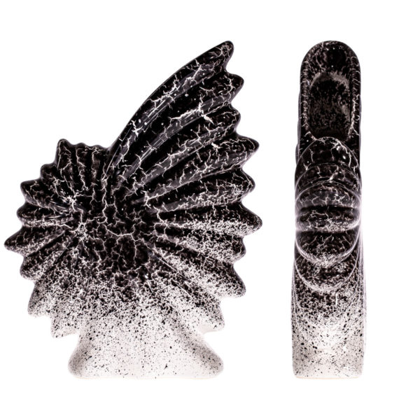 Originálna keramická váza, je odliata v dvojdielnej forme z bielej keramickej hliny. Po vyschnutí a vybratí z formy je vytvorený nástrek originálnou glazúrov čierno-bielej farby. Jej atypický vzhľad a atypické zafarbenie módne doplní moderný nábytok v čierno bielom spojení. Spojením farby a glazúry vznikne originálny a jedinečný vzhľad každej vázy.