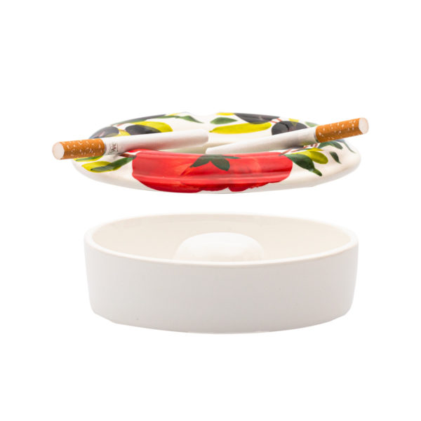 Binalo - je malý popolník na cigarety. Je dvojdielny. Spodná časť je hlbšia kde sa popol s cigarety oklepe a je prikritá vrchnou časťou kde sa cigarety dajú položiť. Popolník má výrez na 3 cigarety. Výhoda krytu je že prifúkaní vetra popol nevychádza s popolníka. Je ručne maľovaný v motíve paradajky & olivy a následne je glazovaný.
