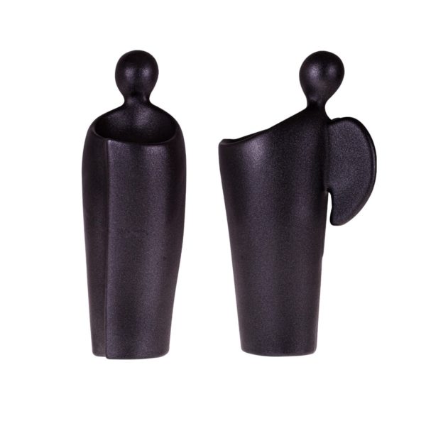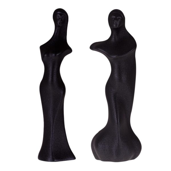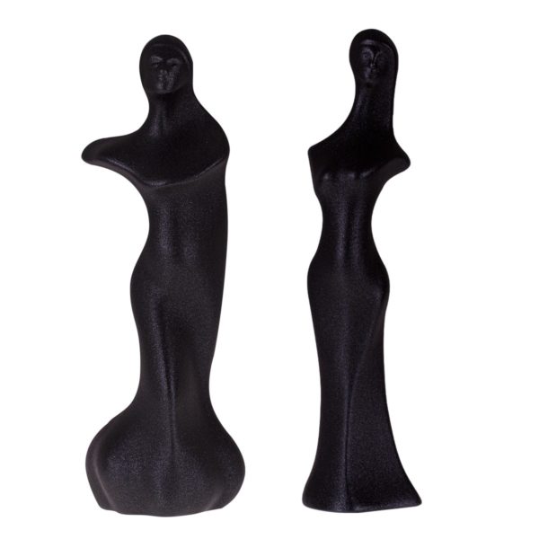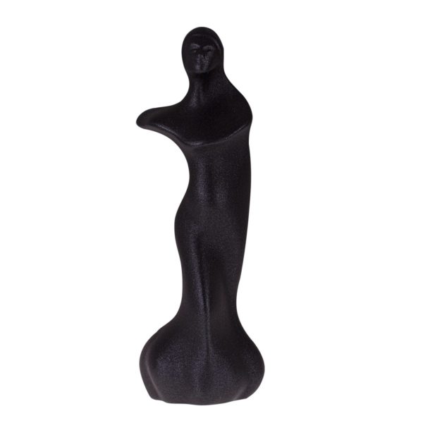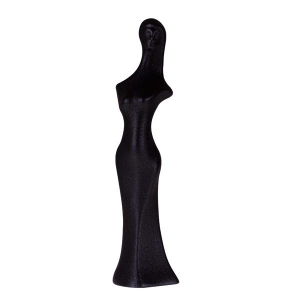 Originálna keramická figurka, je odliata v dvojdielnej forme z bielej keramickej hliny. Po vyschnutí a vybratí z formy je vytvorený nástrek grafitovou práškovou farbou ktorá v sebe obsahuje pieskový poprašok. Figurka je lesklá v modernom grafitovom prevedení a jemne drsná ako po pieskovom nástreku. Jemnučké zalakované zrnká sú následne aj glazované. Spojením farby a glazúry vznikne originálny a jedinečný vzhľad každej figurky.