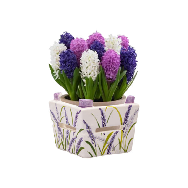Trixo je séria krásnych hranatých dekoračných kvetináčov. Do keramického kvetináča sa vloží plastový kvetinač s rastlinkou. Spolu krásne dotvoria interier domácnosti záhrady alebo balkónu. Trixo je maľovaný na motív levanduly. Je to originálna maľba ktorá sa následne glazujeje a vypáli v peci.