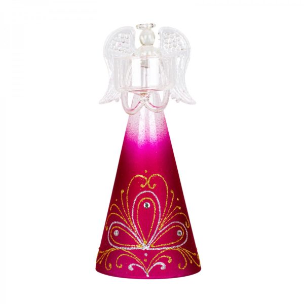 Figúrky sklenených anjelov žiaria okúzľujúcimi farbami, ktoré skrášlia každý kút vášho domova. Na základných farebných podkladoch sa nachádzajú bohaté ornamenty a vzory. Na jemnom skle sa ligocú pridané ozdôbky a dotvárajú tak jedinečný vzhľad týchto pôsobivých dekorácií.