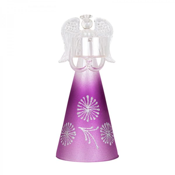 Lesia – Anjel veľký sklenený z miskou na sviečku v rukách