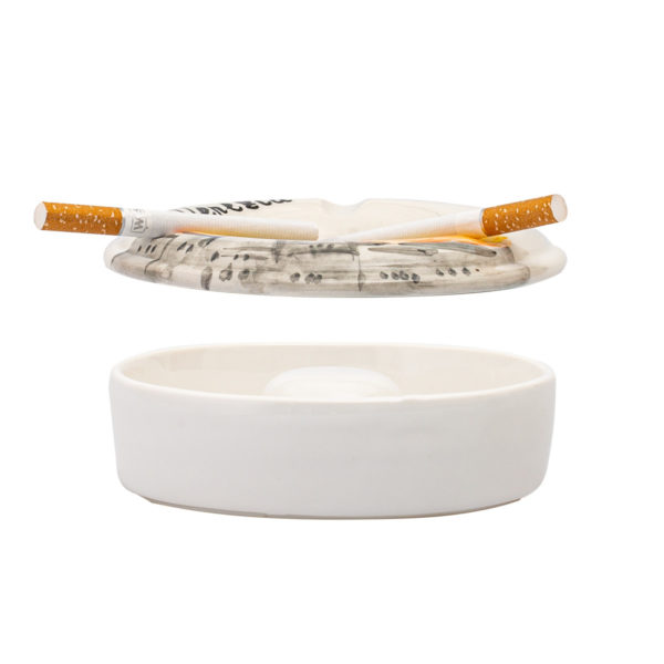 Sagapo - je malý popolník na cigarety. Je dvojdielny. Spodná časť je hlbšia kde sa popol s cigarety oklepe a je prikritá vrchnou časťou kde sa cigarety dajú položiť. Popolník má výrez na 3 cigarety. Výhoda krytu je že prifúkaní vetra popol nevychádza s popolníka. Je ručne maľovaný v motíve Venezia a následne je glazovaný.