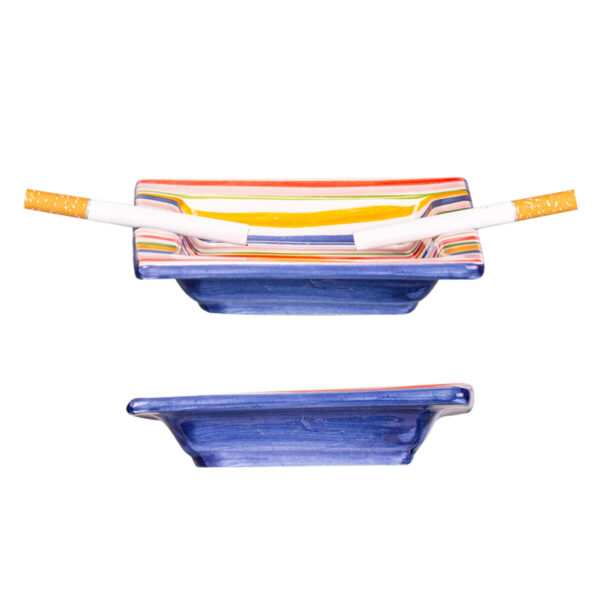 Matelo - Tento malý šikovný popolník je nielen doplnkom, ale aj jedinečným umeleckým dielom. Ručne maľované dúhové pásy mu dodávajú hravý a veselý charakter, pričom lesklá glazúra zvýrazňuje ich sýte farby. S výrezmi pre dve cigarety ponúka pohodlné používanie a zároveň vnáša do priestoru nádych originality. Každý kus je originál, nesúci v sebe remeselnú precíznosť