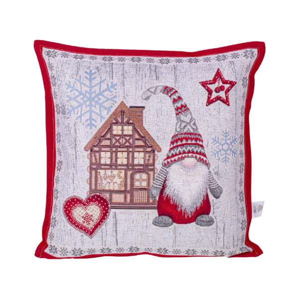 Magnus - Vianočný Trpaslík -Oživte svoj dom vianočnou atmosférou s týmto malebným gobelínovým vankúšom, vyšívaným s láskou a detailmi. V srdci jeho designu stojí vianočný trpaslík Magnus, s veľkou červenou čiapkou a šarmantne dlhou bradou. Za ním sa týči drevený domček s červeným srdiečkom a jemnou vianočnou ozdobou, vytvárajúc intímnu scénu. Okolo trpaslíka tancujú ľahké vianočné vločky, dodávajúce vankúšu príjemný dotyk zimnej kúzelnosti. Nech sa vianočná radosť šíri vo vašom dome s týmto elegantným a pohodlným vankúšom. Návliečka je krásnym a praktickým doplnkom do každej izby. V ponuke je návliečka, ktorú si môžete dať na vankúš, ktorý už máte doma alebo dať do košíka kompletný vankúš. Dekorácia v tvare vankúša spríjemní a oživý atmosféru domova. Výplň vankúša je  vhodná pre alergikov. Obliečka na vankúš urobí radosť milovníkom vianočných sviatkov a vianočných prekvapení všetkých vekových kategórií. V spodnej časti sa náchádza zips.