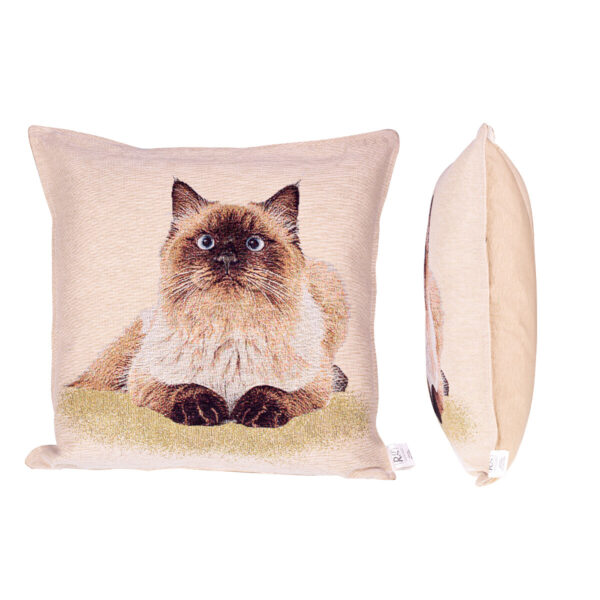Greta  - Sibírska Mačka - Oživte váš domov s našim malým gobelínovým vankúšom, kde je strojovo vyšívaná nádherná Sibírska mačka. Táto prirodzená rasa, stredne veľká a s jedinečným vzhľadom, je zdôraznená v každom detaili tejto nádhernej návliečky. Na jemnom béžovom pozadí sa táto majestátna mačka vyníma, prinášajúc do vášho interiéru pocit elegancie a prirodzenej krásy. Táto návliečka nie je len dekoratívnym prvkom, ale aj vyjadrením lásky k týmto úžasným a originálnym spoločníkom. Návliečka je krásnym a praktickým doplnkom do každej izby. V ponuke je návliečka, ktorú si môžete dať na vankúš, ktorý už máte doma alebo dať do košíka kompletný vankúš. Dekorácia v tvare vankúša spríjemní a oživý atmosféru domova. Výplň vankúša je  vhodná pre alergikov. Obliečka na vankúš urobí radosť všetkým milovníkom mačiek všetkých vekových kategórií. V spodnej časti sa náchádza zips.