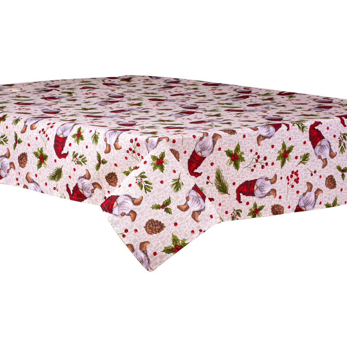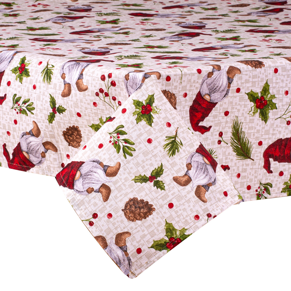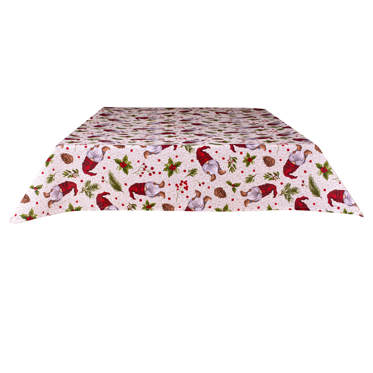 Zafaro – Vianoce obrus – Obdĺžnikový bavlnený obrus v tradičných vianočných farbách – zelenej, červenej a bielej. Obrus je vyzdobený krásnymi červenými vianočnými guľami a zelenými vetvičkami so šiškami, čo vytvára atmosféru radosti a očakávania vianočných sviatkov. Motív vianočných dekorácií prináša do miestnosti príjemnú atmosféru a radosť z blížiacich sa sviatkov. Obrus je ideálny pre vianočné hostiny a rodinné oslavy, prispieva k vytvoreniu teplého a pohodlného prostredia pre rodinu a priateľov. Je vyrobený z kvalitnej bavlny, ľahko sa udržiava a môže slúžiť ako trvalý doplnok vianočnej výzdoby vášho domova.