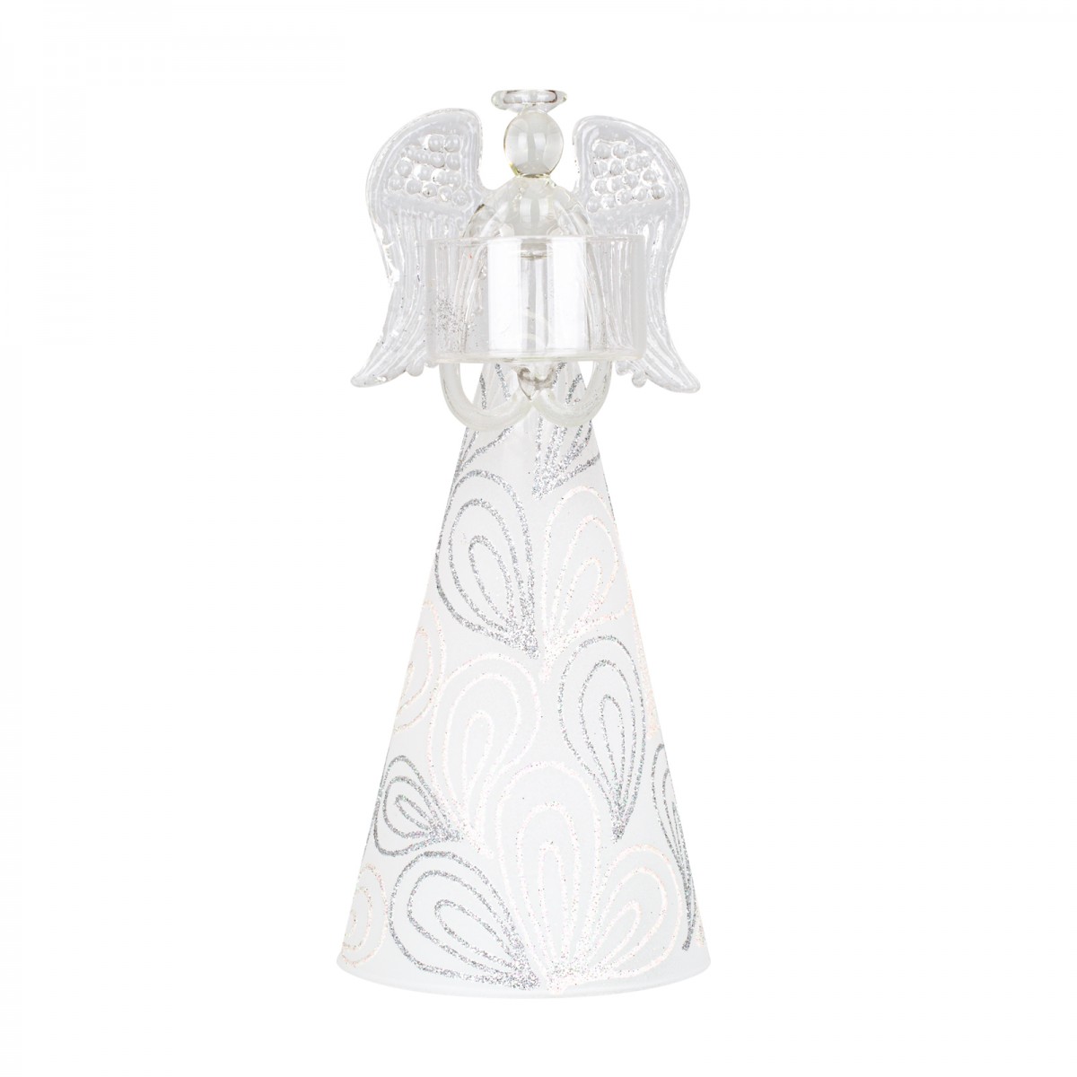 Domov Sklo Anjel sklenený Blanka – Anjel veľký sklenený z miskou na sviečku v ruke