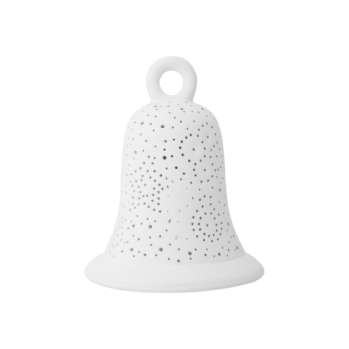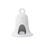CAMPANA ZVONČEK – je krásny dierkovaný svietnik do ktorého sa vkladá čajová sviečka. Zvonček nezvoní ale krásne svieti a môže byť doplnený o krásnu červenú mašlu a LED drotikom. Dotvorí tak atmosféru vianočného domova. Originálna keramická dierkovaná lampa. Je vyrobená z bielej hliny, ktorá je odliata do formy a ručne vydierkovaná. Dierky sú vytvorené tromi veľkosťami. Lampa je vypálená v peci a ručne obrúsená. Tento originálny doplnok je doplnený o sviečku a misku. Na spodku lampy sú ochranné prvky proti poškriabaniu nábytku.