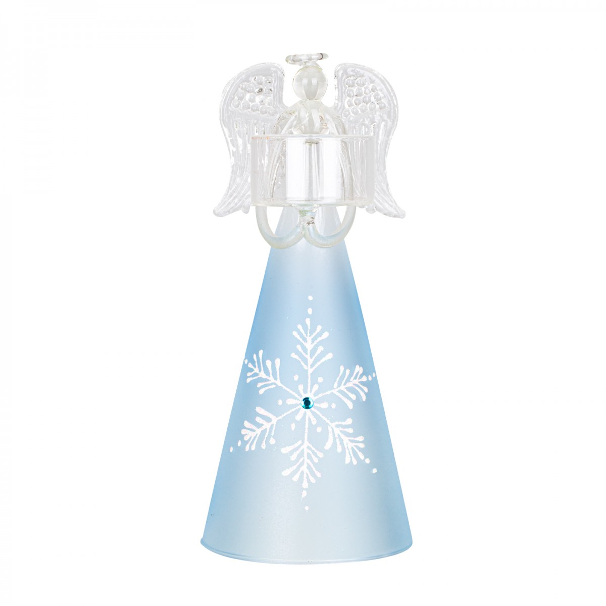Domov Sklo Anjel sklenený Denisa – Anjel veľký sklenený z miskou na sviečku v rukách