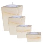 Kubík – je sada 4 malých krémovo-pieskových svietnikov v tvare skrútenej kocky. Set má 4 ks svietnikov v rôznych veľkostiach od 4-10 cm. Vo vrchnej časti je vybratý priestor pre čajovú sviečku. Možnosť kúpiť aj ako set alebo aj na kusy.   Svietniky sa dáju pekne dekorovať aj s kúskom čečiny.  Krásny pieskovo – krémový štýl výroby je následne aj glazovaný.  Neutrálny decentný vzhľad radí svietnik medzi široké využitie v rôznych interieroch.