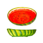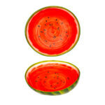 Vamara - Predstavujeme malú misku na ovocie v motíve prekrojeného červeného melóna. S vnútornou svetlo červenou farbou a vonkajšou svetlo zelenou s dekorom melónovej dužiny, táto miska okamžite zaujme. Ideálna na servírovanie ovocia, orieškov či dezertov, prinesie do vašej kuchyne sviežosť a letnú náladu. Praktická a esteticky príťažlivá, táto miska dodá vášmu stolu hravý a farebný šarm.