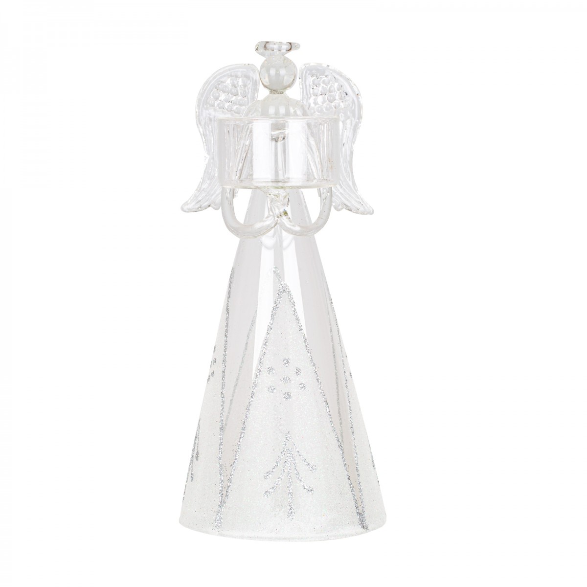 Domov Sklo Anjel sklenený Marta – Anjel veľký sklenený z miskou na sviečku v rukách