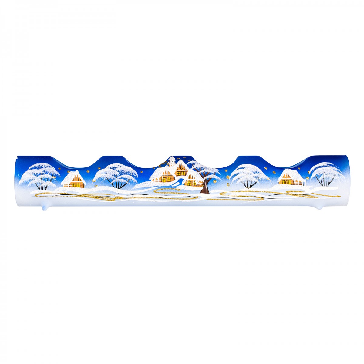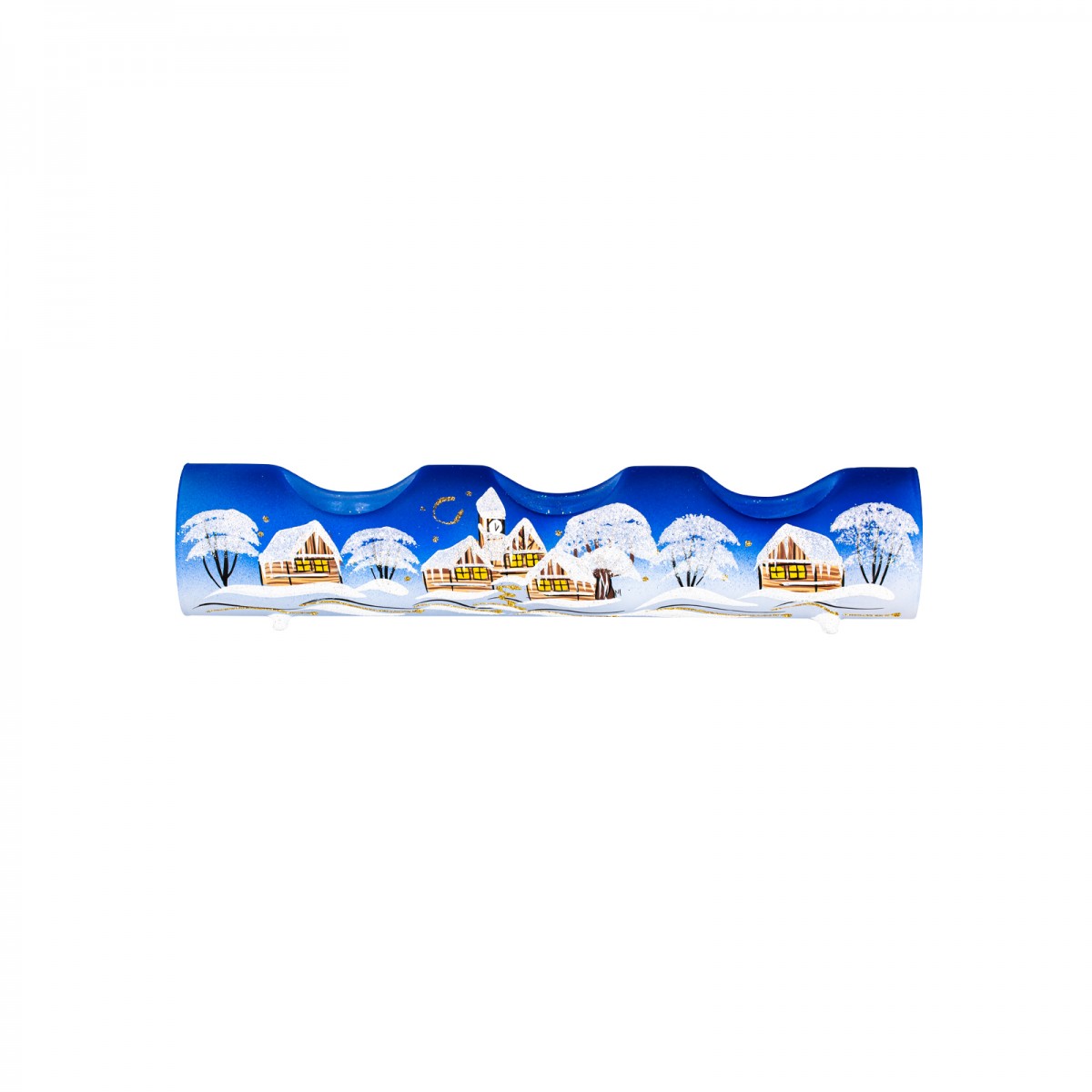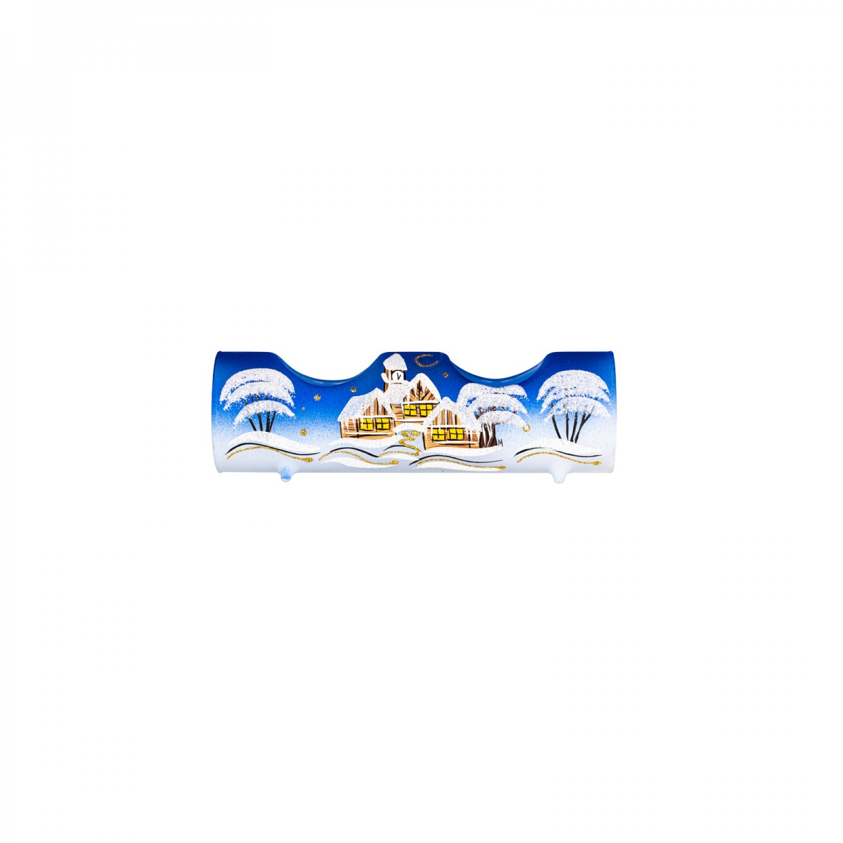 Pre oživenie zimnej vianočnej atmosféry je v ponuke jednoduchý sklenený svietnik v tvare valca.  Valec je jemné fúkané sklo na ktoré sa ručne maľuje zimná krajinka na motív slovenskej dedinky.  Maľuje sa v štyroch farbách:  Modrá, Červená, Biela, Zlatá.