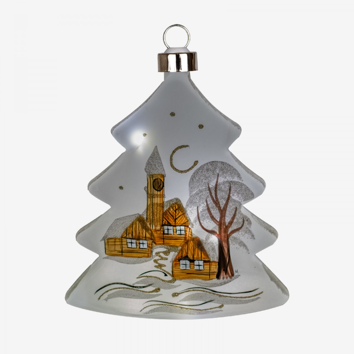 Je to ozdoba na zavesenie do okna prípadne na iné závesné miesto. Krásna bezúdržbová sklenená vianočná lampa ktorá pomôže dotvoriť vianočnú atmosféru.  Stromček je zabalený do darčekovej krabičky s priesvitným vrchnákom a vystlaný penou.
