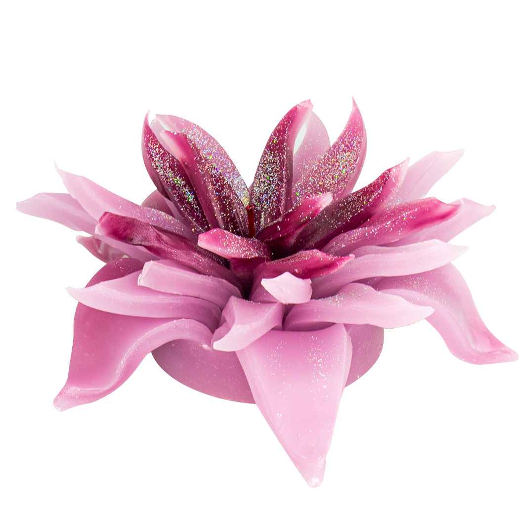 Ručne vyrezávaná sviečka s dlhotrvajúcou vôňou v tvare kvetu v rôznych farbách a troch veľkostiach. Sviečky sa dodávajú v balení z priesvitného plastu – v tubuse. Materiál – parafín. Sviečka vonia bez zapálenia niekolko mesiacov.  Potom sa dá zápaliť pre potešenie.    V ponuke 3 veľkosti