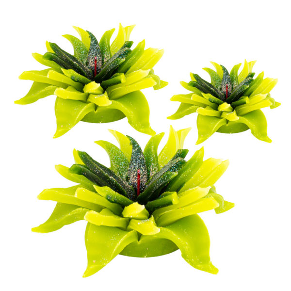 Ručne vyrezávaná sviečka s dlhotrvajúcou vôňou v tvare kvetu v rôznych farbách a troch veľkostiach. Sviečky sa dodávajú v balení z priesvitného plastu – v tubuse. Materiál – parafín. Sviečka vonia bez zapálenia niekolko mesiacov.  Potom sa dá zápaliť pre potešenie.    V ponuke 3 veľkosti