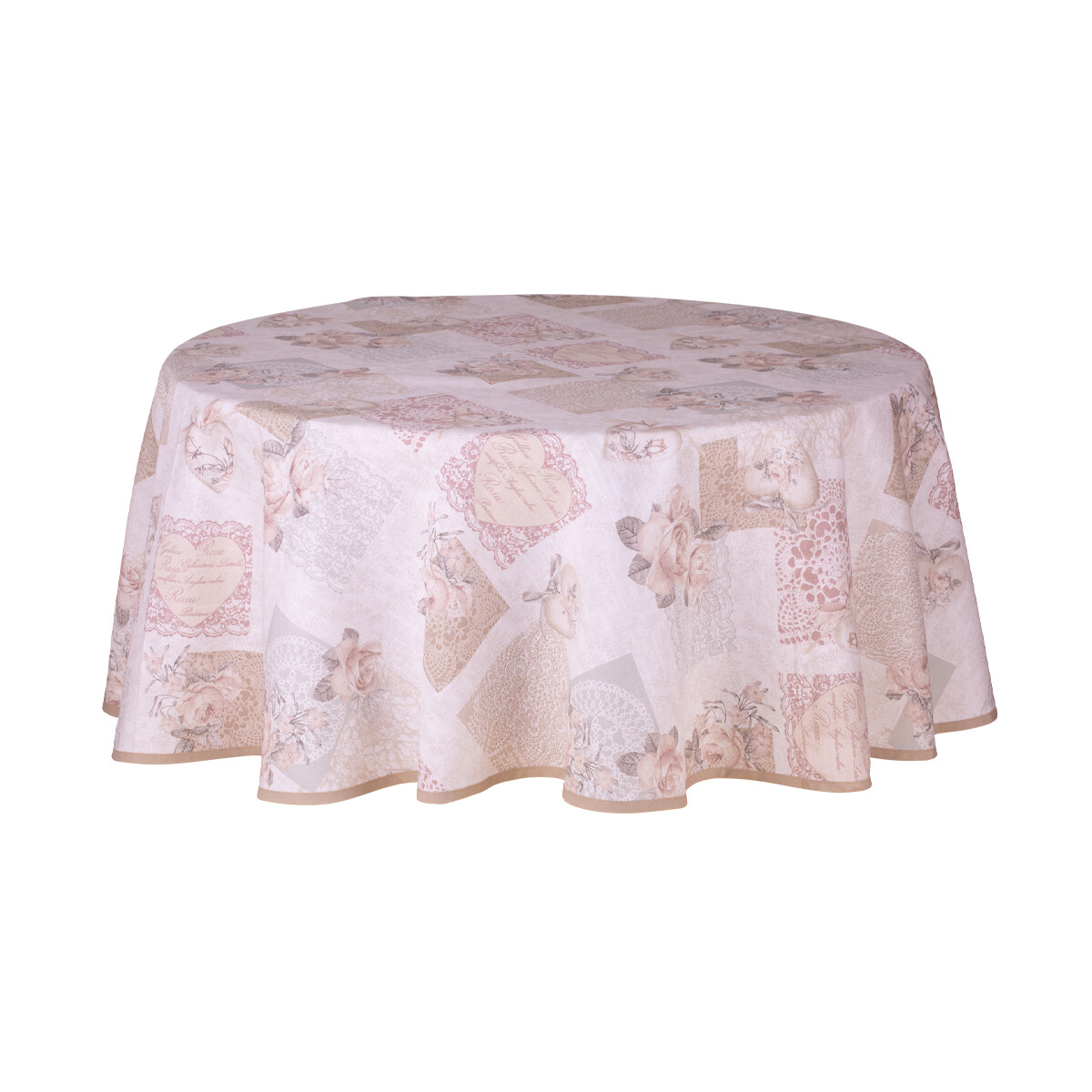 Taneo – Nostalgická vôňa vintage –Pridajte do vášho domova nádych elegancie s týmto okrúhlym bavlneným obrusom. Staroružový dekor tvorí pozadie pre krémové ruže s vonnými srdiečkovými voskami, ktoré nádherne dotvárajú jeho povrch. Vystrihované servítky a talianske nápisy na nich pridávajú do tejto kompozície štýl a osobitosť. Každý pohľad na tento obrus je ako návšteva elegantnej kaviarne v Taliansku, kde sa vôňa ruží mieša s esenciou jemného umenia a vkusu.