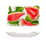 Zeroso – Štvorcová miska vás očarí živým motívom červeného vodného melóna. Žiarivá červená farba šťavnatých kúskov v kontraste s jemným pozadím dodávame misku sviežosť a chuť. Precízne ručné maľovanie a lesklá glazúra zvýrazňujú jej výnimočný charakter. Ideálna na servírovanie šalátov, príloha či ovocia – vnesie na váš stôl atmosféry talianskeho leta a radosť z jedla.